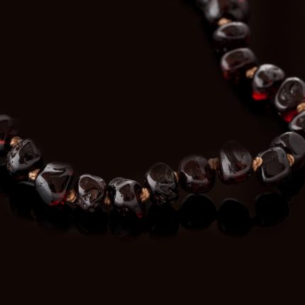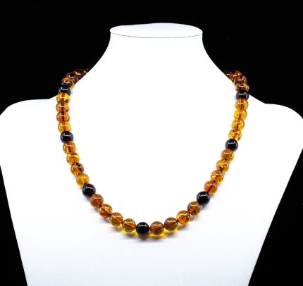 Amber necklace – Mandarin kolje features round ball-shaped beads, disc shape spacers and faceted semi ellipse shape beads of polished natural Baltic amber, strung together on a non-elastic cord.